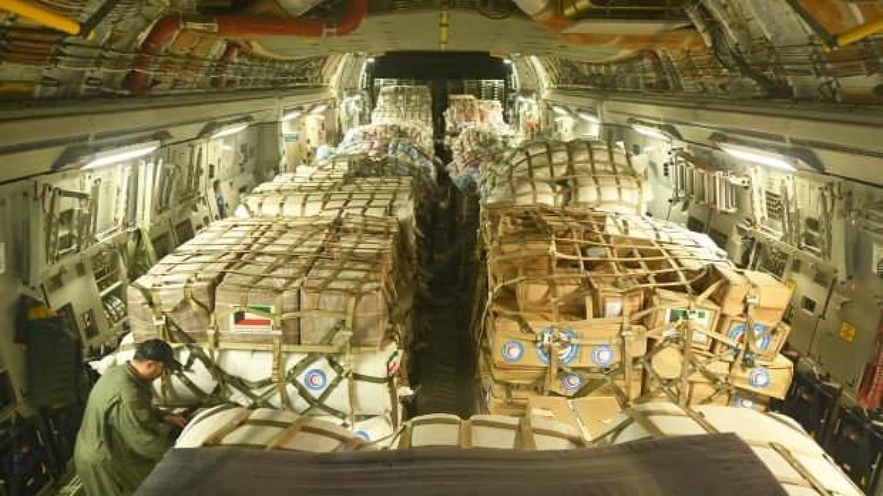 Tıbbi malzeme, battaniye, çadır ve gıda maddeleri taşıyan uçaklarda yaklaşık 90 tonluk yardım malzemesi bulunuyordu.