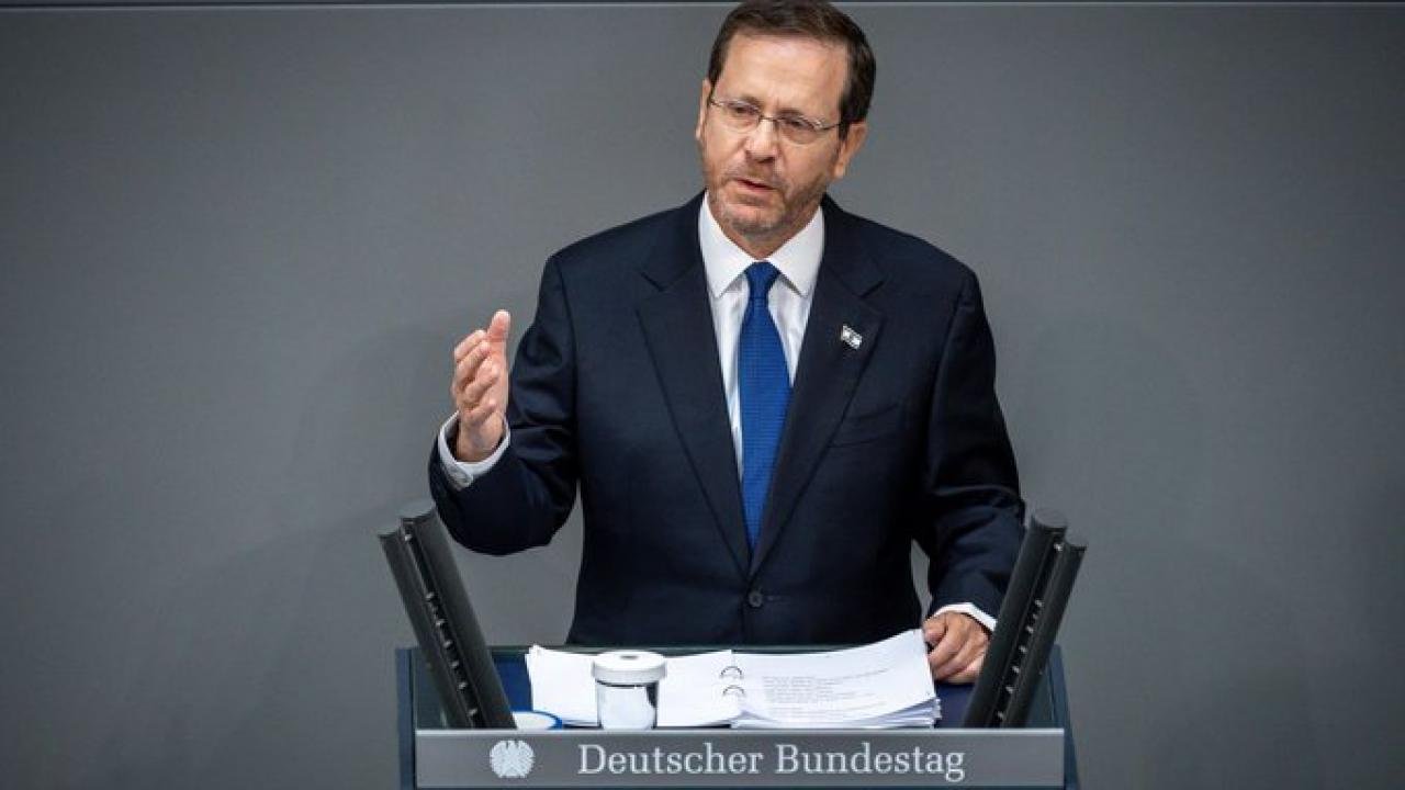 Konuşmasının başında milletvekillerini ayağa kalkarak Nazi Almanyası’nda katledilen Yahudilerin ruhlarını anmak için birlikte dua etmeye çağıran Herzog, ardından bir dua okudu.