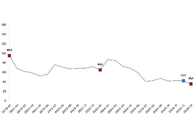 Sanayi, inşaat, ticaret ve hizmet sektörleri toplamında ciro endeksi (2021=100), 2025 yılı Ocak ayında yıllık %35,4 arttı.