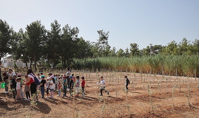 Başkan Muhittin Böcek, daha sonra minik çocuklarla birlikte zeytin ve defne fidanlarını