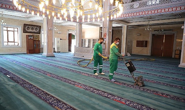 İlçedeki ibadethanelerin her ay iç mekân temizliğinde tüm halılar elektrik süpürgesi ile süpürülürken, parke, mozaik, mermer zeminler, mihrap, kürsü, minber, pencere önleri ve ayakkabılıklar, armatür, flüoresan, aplik, avize, radyatör, tırabzan, cam ve cam çerçeveleri ile benzeri eşyalar detaylı bir şekilde temizleniyor. Yılda en az iki sefer ise mobil halı yıkama makinesi ile halılar yıkanıyor.