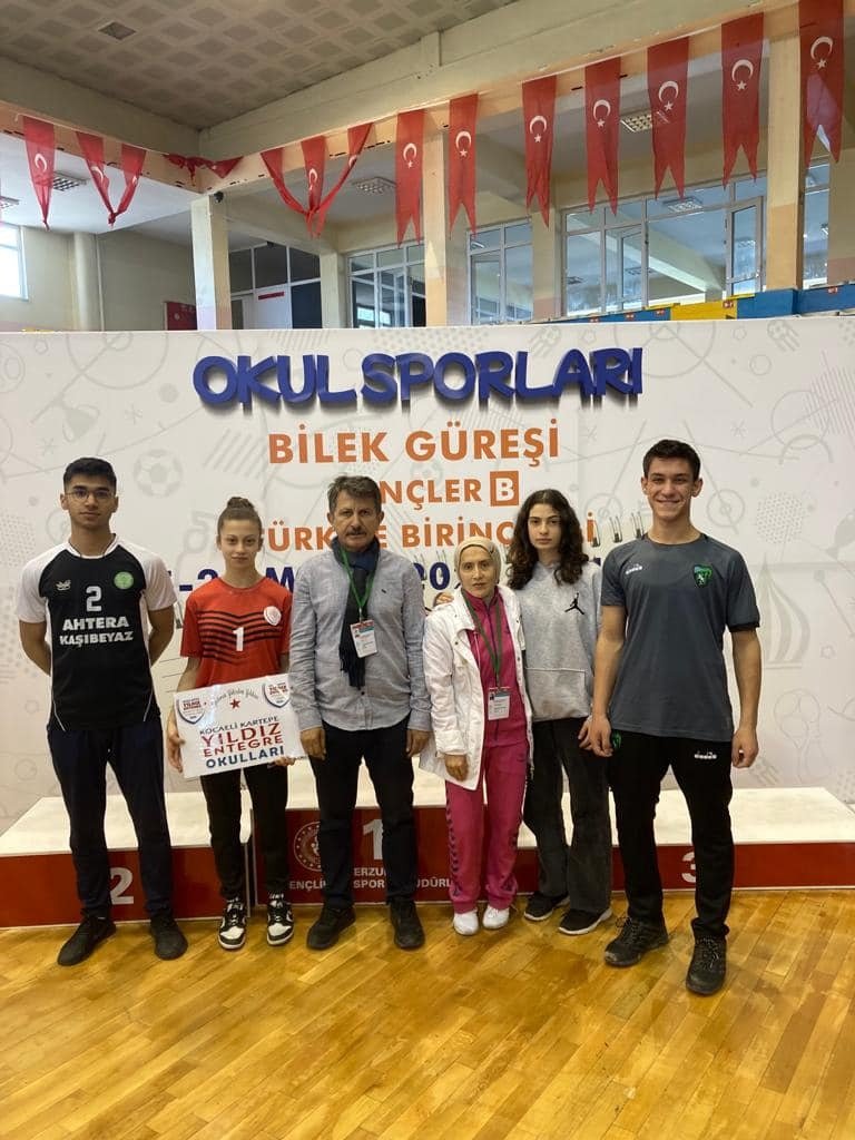 Kartepe, şampiyonluklarla adını konuşturmaya devam ediyor. Kartepe Yıldız Entenre Endüstri Meslek Lisesi Müdürü İbrahim Şen, “Kafile olarak gittiğimiz Türkiye Bilek Güreşi Şampiyonasında 40 kg Sol kolda Yıldız Entegre Anadolu Lisesi öğrencimiz Zeynep Özer ve 50 kg sol kolda Maşukiye Anadolu Lisesi öğrencisi Beyza Ece Atmaca Türkiye Şampiyonu oldu. Bu şampiyonlukların yanında 75 kg’da Sabancı MTAL öğrencimiz İbrahim Enes Gökçe ve 40 kg sağ kolda öğrencimiz Zeynep Özer 4.olarak kürsü yapmışlardır. Öğrencilerimizin ailelerine, şampiyona boyunca onlara koordinatörlük eden Beden Eğitimi Öğretmeni Nurdan Karagöz Akçaya ve okulumuz dışından şampiyonaya katılan öğrencilerin okul müdürleri şahsında emek veren tüm hocalarımıza teşekkür ederiz.” dedi. Kartepemizin böylesi güzel başarılarla anılması bizleri de ziyadesiyle memnun etmiştir. Kartepe Bülteni olarak bu başarı hikayelerini sizlerle buluşturmaya devam edeceğiz.