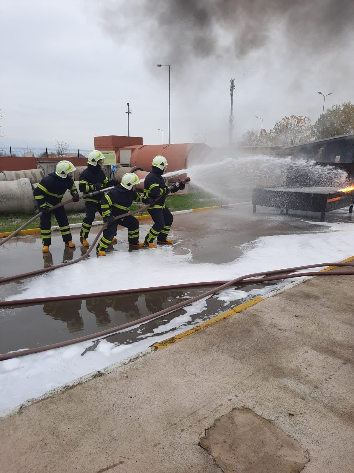 Büyükşehir İtfaiyesi Önleme ve Eğitim Şube Müdürlüğü Eğitim Birimi KOBİTEM personellerince verilen eğitimde, eğitim sahasında bulunan simülatörler vasıtasıyla olası bir akaryakıt yangınına yaklaşma ve köpük ile söndürme uygulamaları gerçekleştirildi.