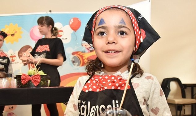 Kartepe Belediyesi Kültür ve Sosyal İşler Müdürlüğü tarafından düzenlenen etkinlikte minikler şarkılar eşliğinde eğlenirken, kendi elleriyle hazırladıkları çikolatalı elma şekerlerini yediler.
