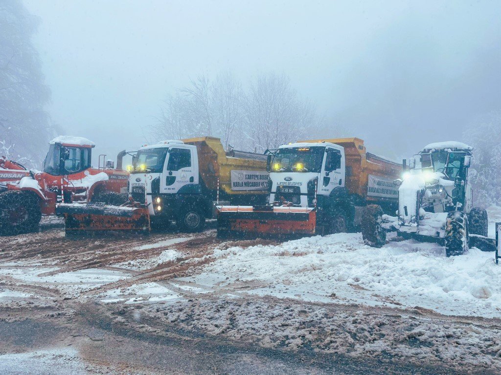 Kar yağışının başlamasıyla birlikte Kartepe Belediyesi Fen İşleri Müdürlüğü’ne bağlı ekipler, özellikle yüksek rakımlı bölgelerde kar küreme ve tuzlama çalışmalarına aralıksız devam ediyor. Özel donanımlı araçlar ve iş makineleriyle sahada görev yapan ekipler, yoğun yağış ve tipiye rağmen yolların açık kalmasını sağlıyor.