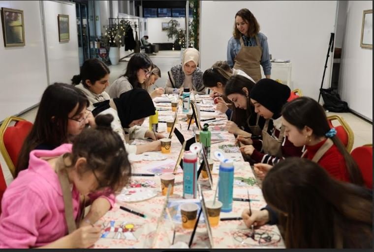 Kartepe Sanat Evi’nde gerçekleştirilen etkinliklerin ilk durağında çocuklar, unutulmaya yüz tutmuş geleneksel sanatlardan biri olan Cam Altı Boyama ile tanıştı. Eğitmenler eşliğinde camın arka yüzeyine hayallerindeki figürleri işleyen minikler, hem sabır gerektiren bir sanatı deneyimledi hem de ortaya birbirinden renkli eserler çıkardı. Teknik becerilerini geliştiren çocuklar, kendi hazırladıkları tabloları sergilemenin mutluluğunu yaşadı.
