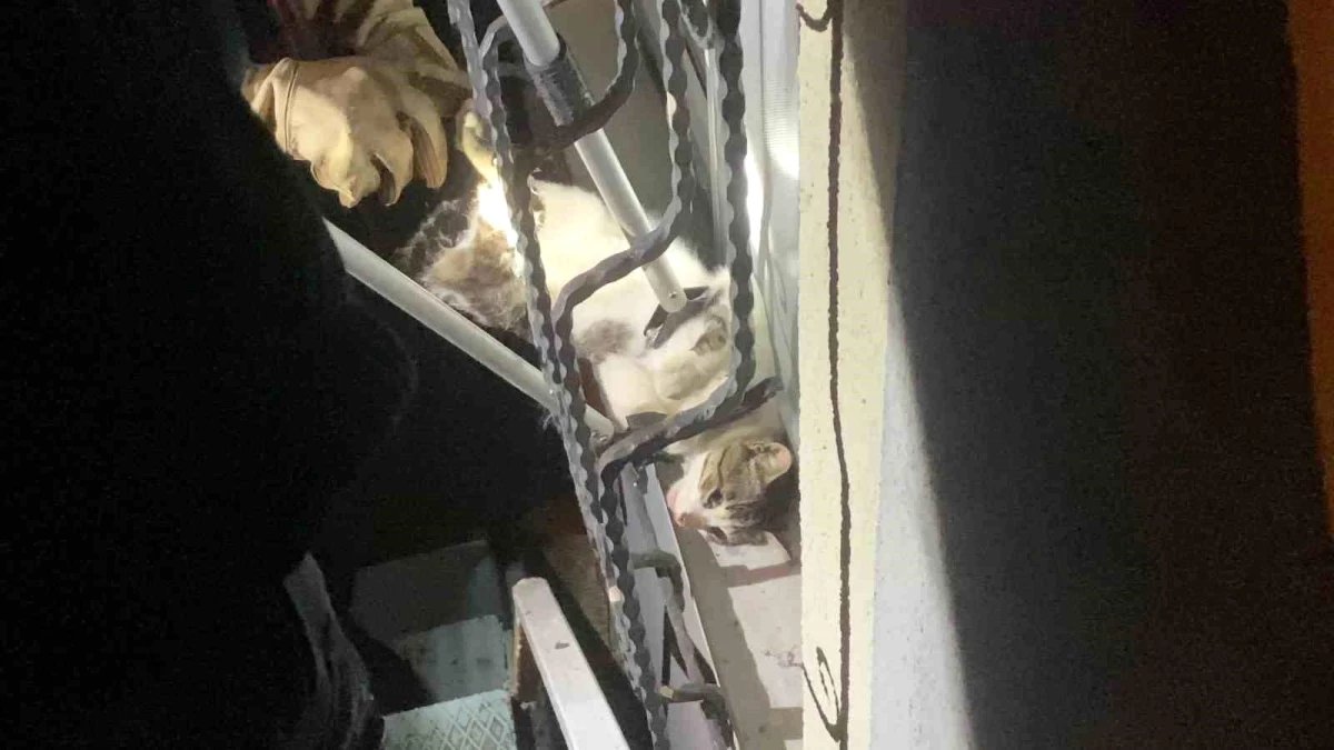 Kocaeli‘nin Gebze ilçesinde binanın zemin katındaki pencerenin demir korkuluğuna sıkışan ve ayağı kırılan kediyi itfaiye kurtardı.