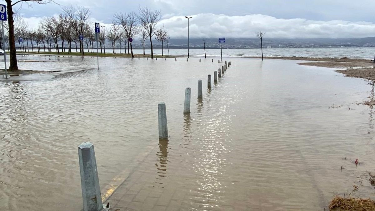 Kocaeli‘de kuvvetli rüzgar ve fırtına kent genelinde günlük yaşamı olumsuz etkiliyor. İzmit sahil bandı ve otopark, şiddetli fırtına sebebiyle denizden taşan suyla kaplanırken insanlar kuvvetli fırtına sebebiyle evden çıkmamaya özen gösteriyor.