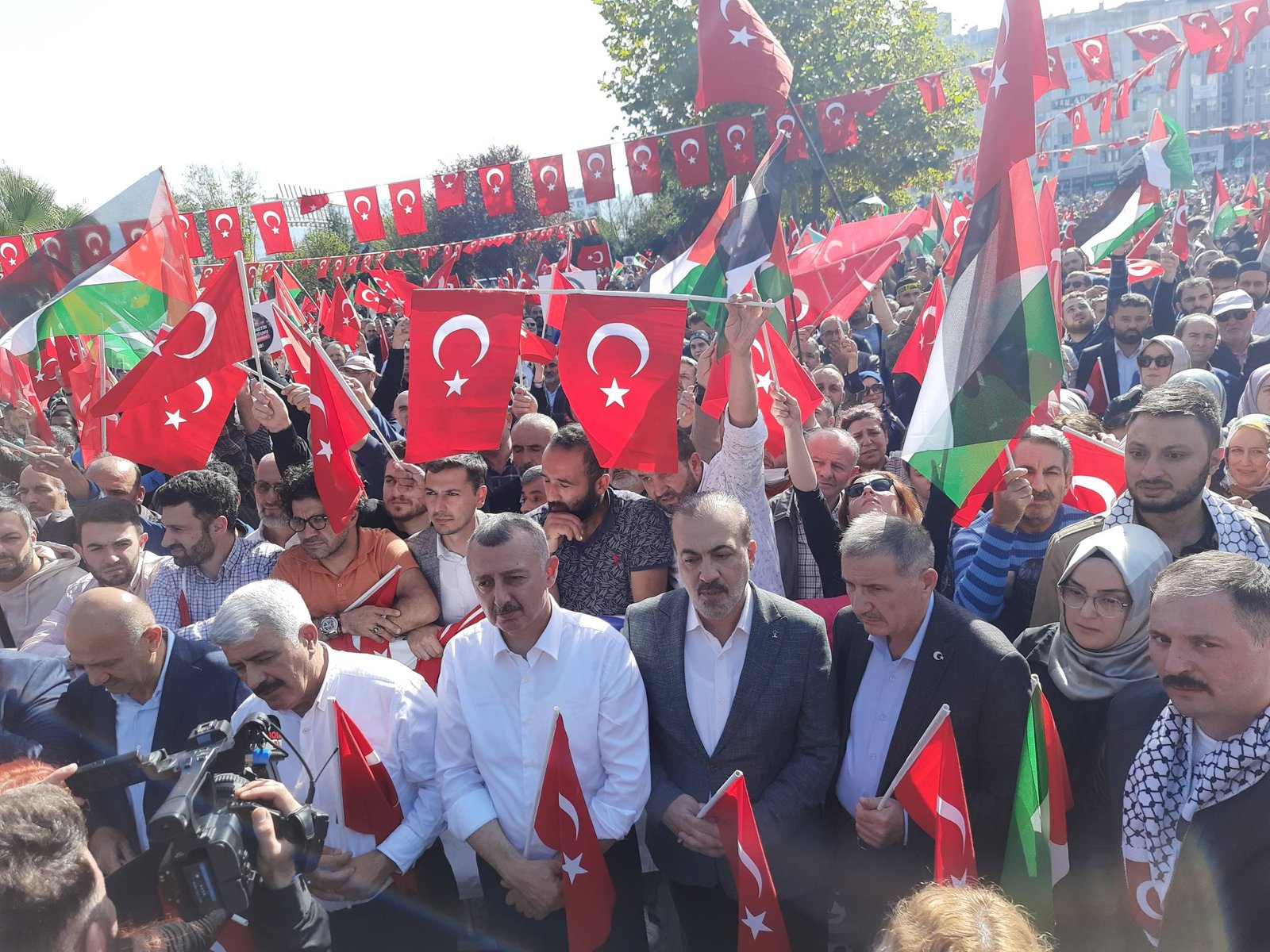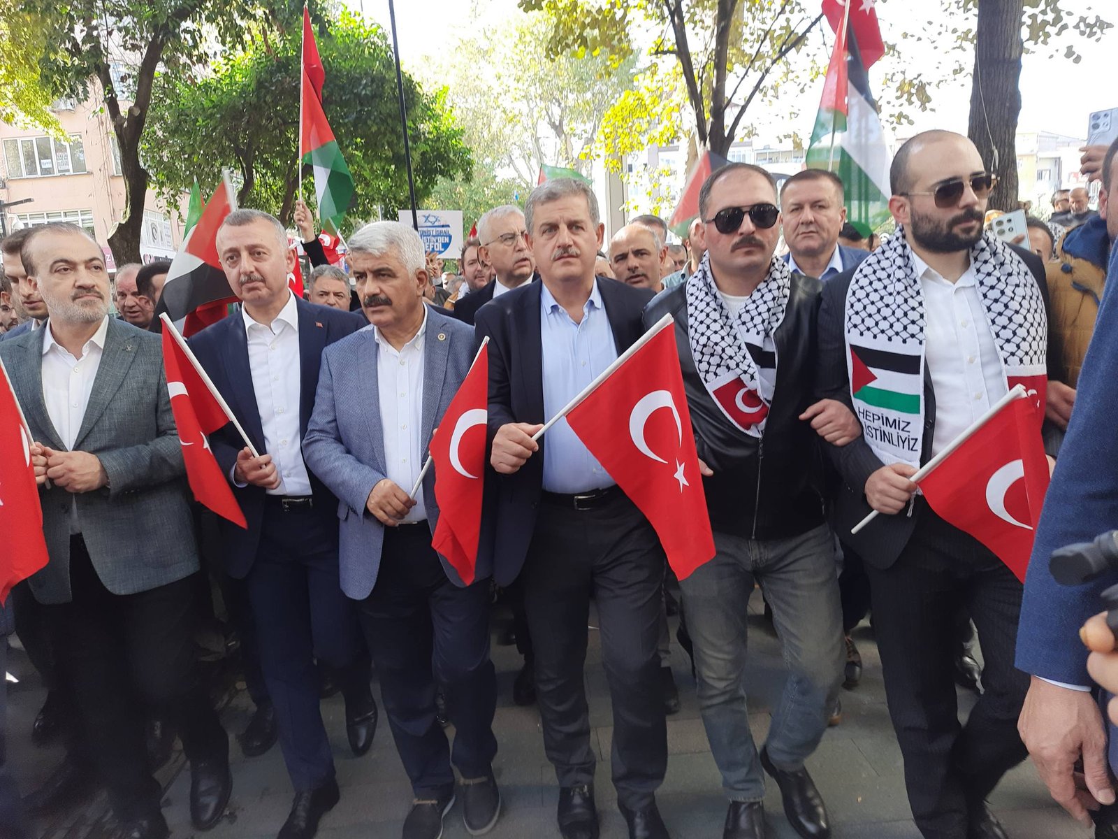 Kocaeli Gönüllü Kültür Teşekkülleri tarafından miting organize edilen yürüyüş, Kocaeli ‘de bulunan 250 Sivil Toplum Örgütünün desteği, İzmit’te düzenlenen Büyük Filistin Mitingi, İzmit Fevziye Camii önünden yürüyüşle başladı. Partilerlesin İl Teşkilatları ve kalabalık bir vatandaş grubunun katılımı gerçekleşen yürüyüş, tekbir sesleri ile buradayız mesajını verdi.