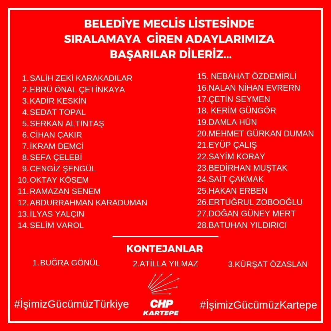 CHP KARTEPE BELEDİYE MECLİS ÜYELERİ BELLİ OLDU..