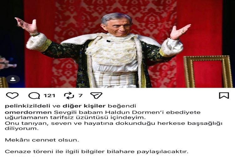 Haldun Dormen’in vefat haberini oğlu Ömer Dormen, sosyal medya hesabından yaptığı paylaşımla duyurdu. Paylaşımında,